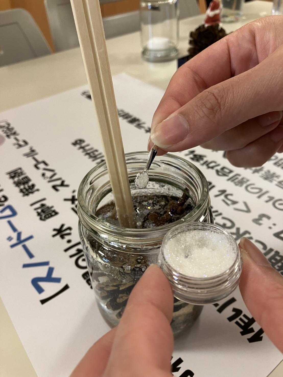 さて。先日、ツワブキの会の作業体験で、参加者のみなさんとスノードーム制作を行いました。